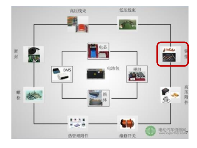 因此新能源汽車動(dòng)力電池組是軟連接器應(yīng)用最廣的領(lǐng)域,新能源汽車動(dòng)力電池組中的電芯數(shù)量達(dá)到上百甚至數(shù)千個(gè),軟連接器主要負(fù)責(zé)電池組的電芯之間的功率連接。