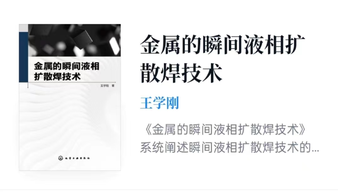 2021年出版的《金屬的瞬間液相擴散焊技術》講解了什么是瞬間液相擴散焊,今天就從書單上摘錄和大家分享一下。