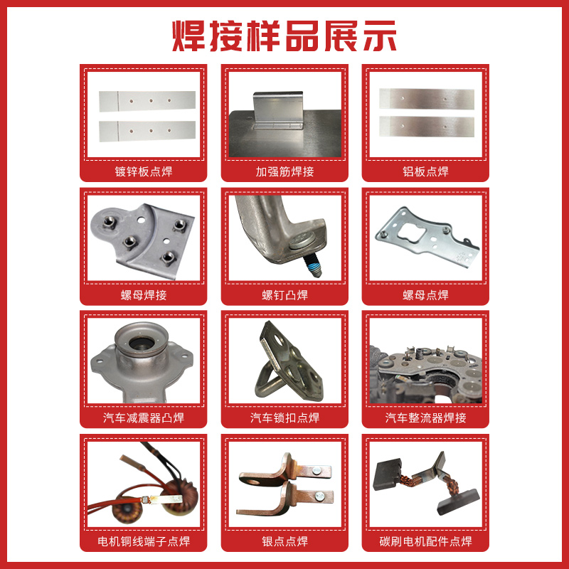 設備應用:汽車制造行業高強度鋼、熱成型鋼的點焊和螺母凸焊,也可應用于普通的低碳鋼板、不銹鋼板、鍍鋅板、鋁板、線材的點焊、多點凸焊,以及高低壓電氣行業銅線的電阻釬焊、點焊,銀點和銅板的釬焊、復合銀點焊接等