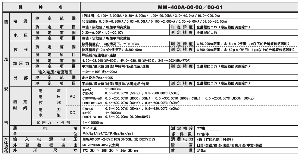 決定焊接質(zhì)量因素的參數(shù)最多能顯示、判定10個(gè)項(xiàng)目,并可顯示4種波形。