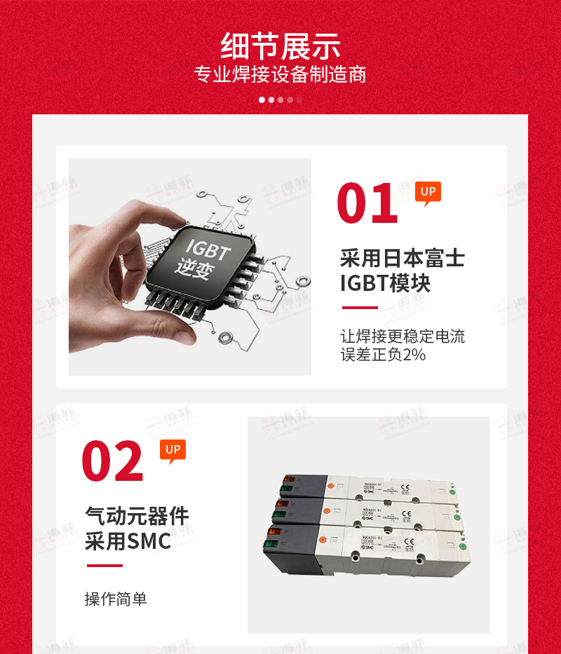 設(shè)備應(yīng)用:汽車制造行業(yè)高強度鋼、熱成型鋼的點焊和螺母凸焊,也可應(yīng)用于普通的低碳鋼板、不銹鋼板、鍍鋅板、鋁板、線材的點焊、多點凸焊,以及高低壓電氣行業(yè)銅線的電阻釬焊、點焊,銀點和銅板的釬焊、復(fù)合銀點焊接等